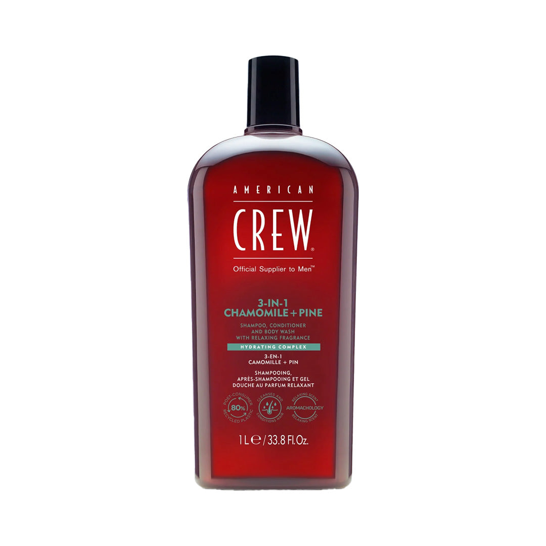 American Crew | 3-in-1 Shampoo, Conditioner, and Body Wash – Chamomile + Pine (1L)