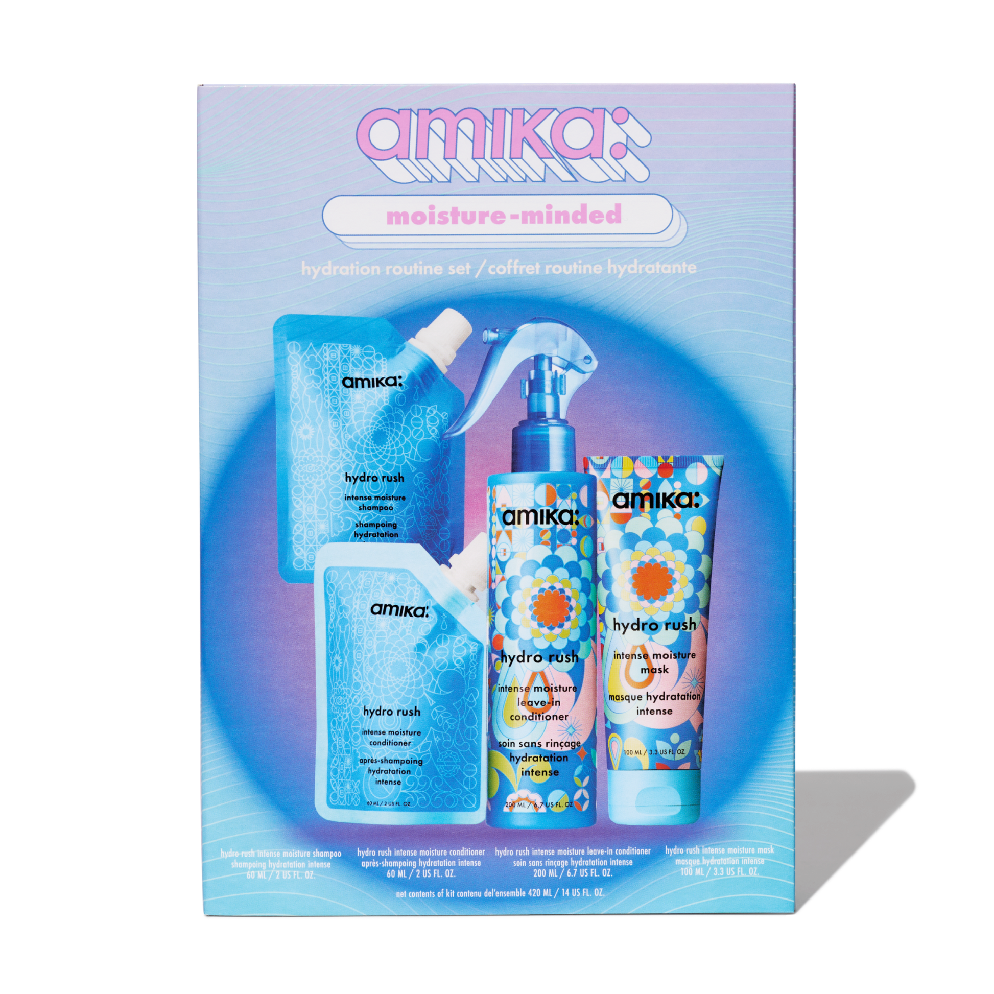 drench strands in deep hydration with 4 moisturizing must-haves: travel sizes of hydro rush intense moisture shampoo + conditioner, a full size hydro rush leave-in conditioner + a travel size hydro rush intense moisture mask.