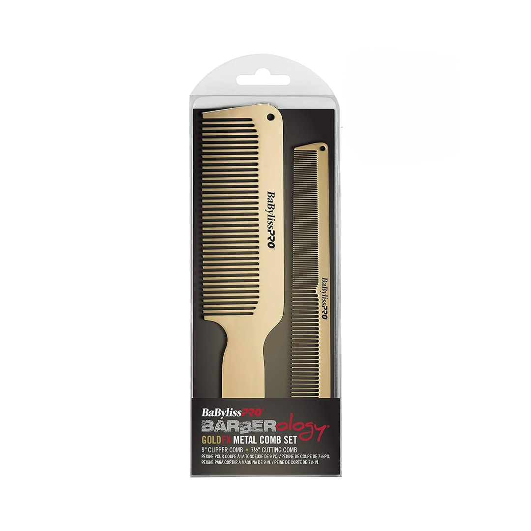 Elevate your grooming precision with the GoldFX Metal Comb 2-Pack. These professional-grade combs offer exceptional control and durability, making them essential tools for barbers and stylists. Their gold finish adds a touch of luxury to your grooming toolkit, combining style and functionality.