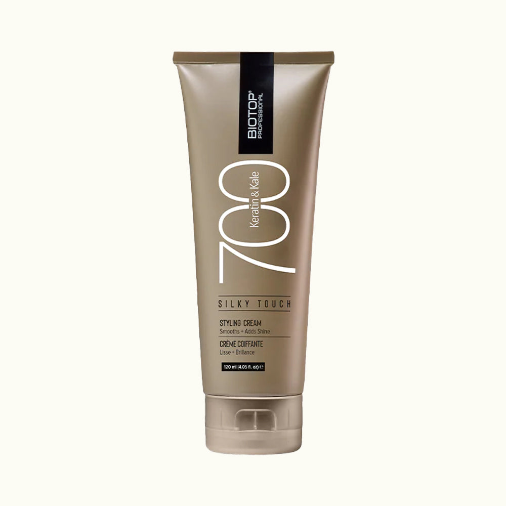 700 Keratin + Kale Silky Touch is a lightweight, styling cream-gel with as light hold. This perfectly balanced styling aid hydrates and softens hair with the right amount of hold & control to help you easily achieve the perfect style. It seals the cuticle to protect against styling damage, while banishing frizz and flyaways and adding glossy shine.