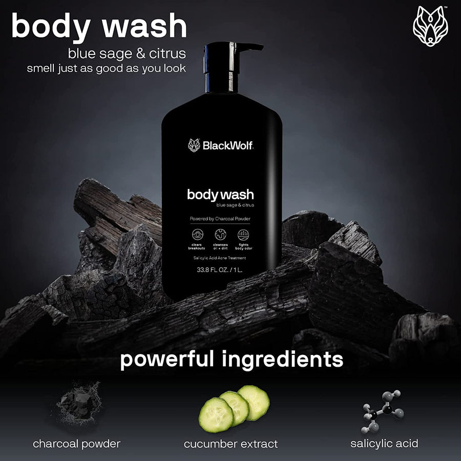 Using the power of charcoal and salicylic acid, Black Wolf body wash removes toxins and impurities from the skin to make stubborn acne breakouts a thing of the past.