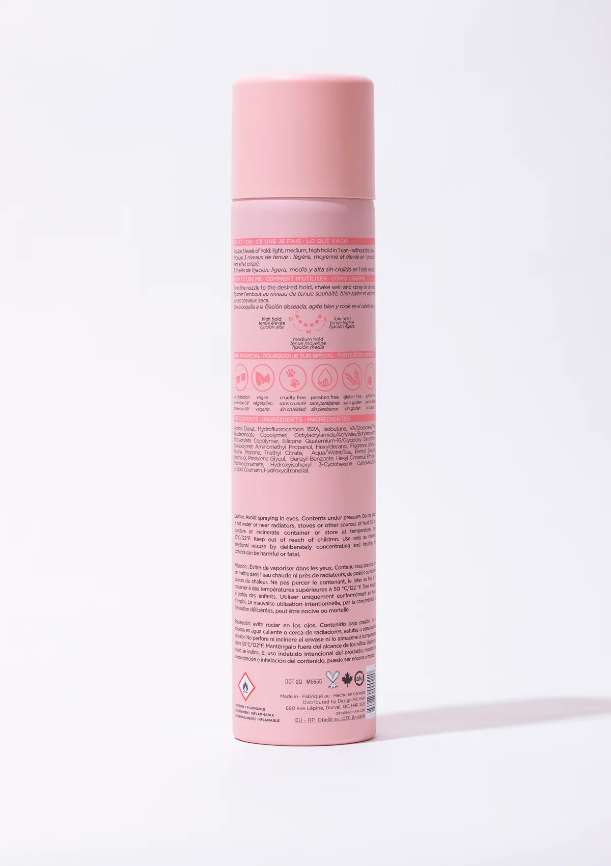 - Medium hold (5/10 hold level)– Flexible yet long-lasting hold, perfect as a working spray