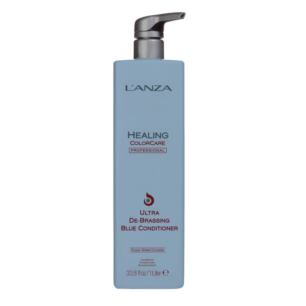 L'ANZA Healing ColorCare De-Brassing Blue Conditioner eliminates unwanted warmth and brassiness in the orange to orange-red range. Ideal for medium brunettes and darker.