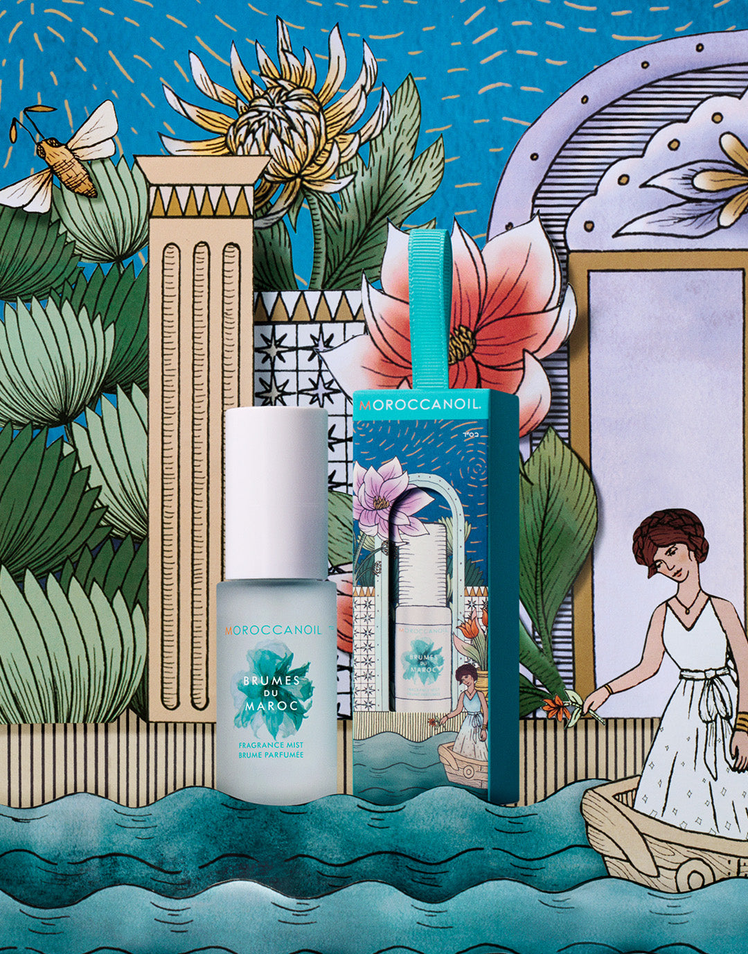 Introducing our first-ever fragrance offering, Brumes du Maroc Hair & Body Fragrance Mist. Featuring our iconic signature scent—a blend of spicy amber and sweet floral notes—this refreshing mist transports you to the Mediterranean with every spritz. The lightweight formula also includes antioxidant-rich argan oil and Vitamin E to nourish and hydrate, plus UV absorber technology to help protect and preserve the hair. Use throughout the day as a refresher for hair and body. Sulfate and paraben-free.