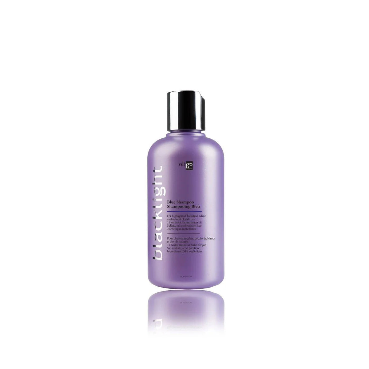 Blacklight’s Blue Shampoo’s professional formula is stronger than the retail formula for better tonal control. is shampoo is formulated for highlighted, bleached, white and natural blonde hair, eliminates brassiness and refreshes faded highlights leaving hair looking cleaner and brighter. Its unique formula, enriched with 11 amino acids and argan oil, moisturizes, strengthens hair structure and repairs surface damage while increasing shine and colour retention. Sulfate, salt and paraben free.