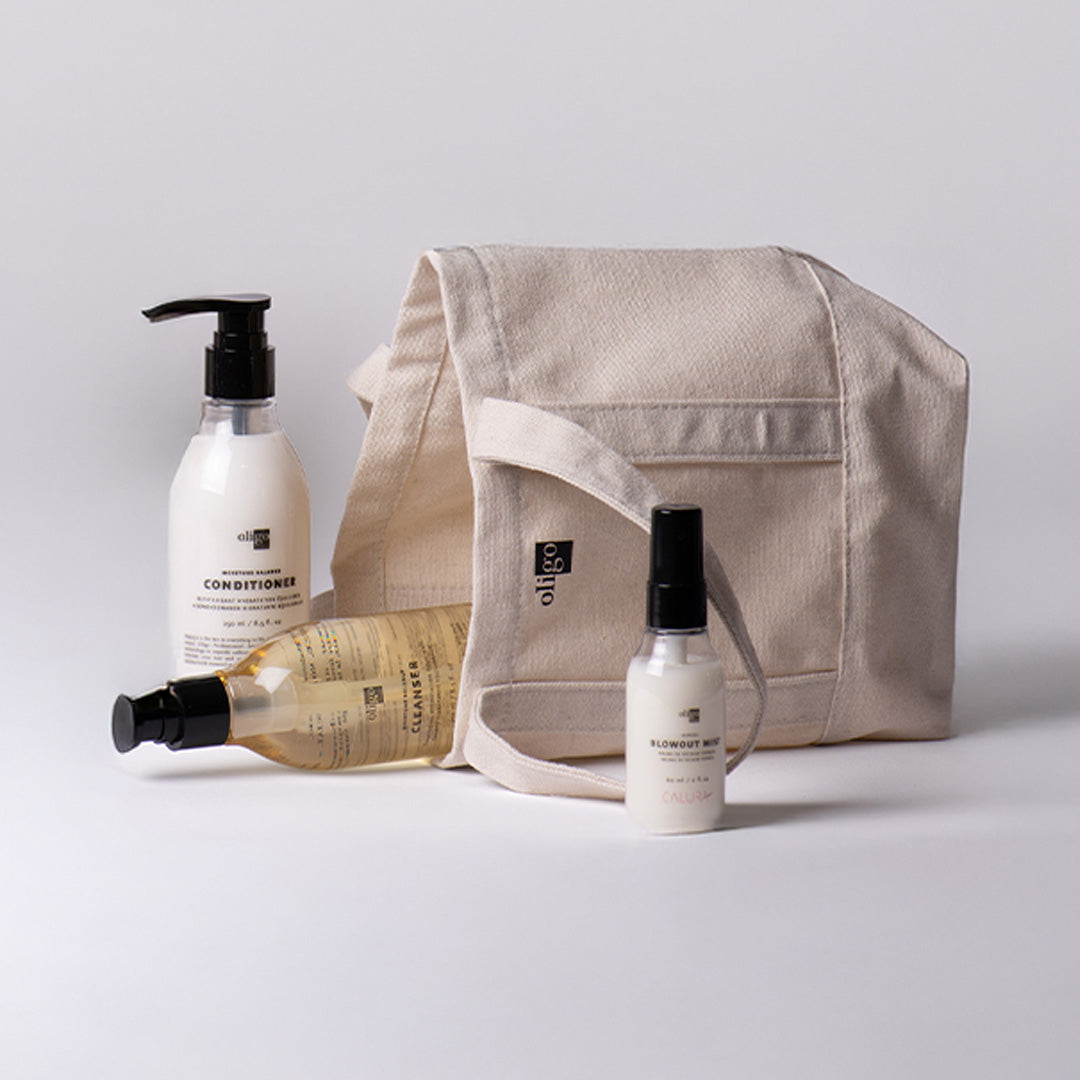 Offer back-to-school essentials to your salon guest with a reusable canvas bag filled with must-have haircare! This convenient kit includes a shampoo, conditioner, and travel-size styling product, making it perfect for freshening up between classes, after activities, or before social events.