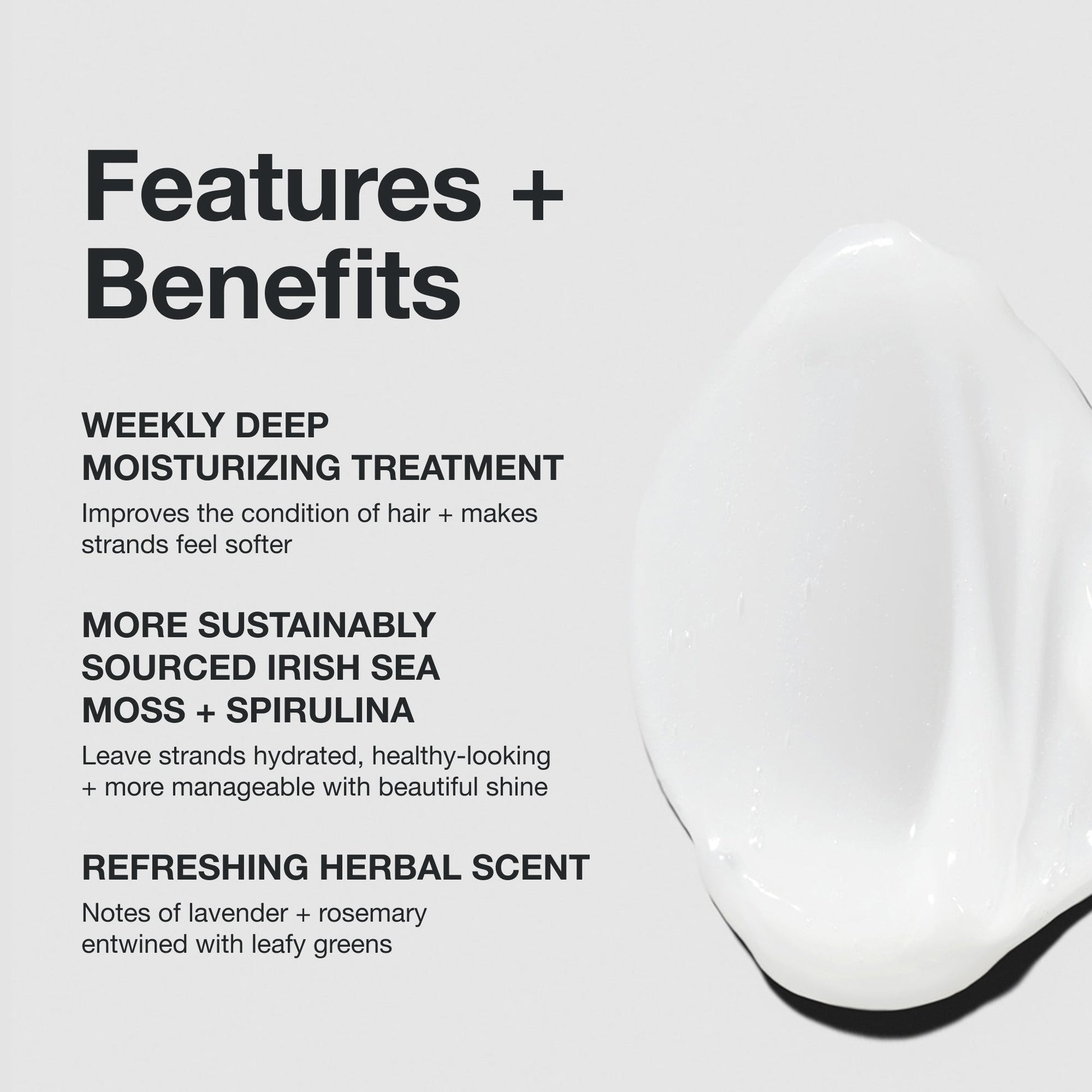Ultra-rich, deep moisturizing treatment for dry hair. More sustainably sourced Irish sea moss and spirulina leave strands hydrated, healthy-looking and more manageable with beautiful shine.